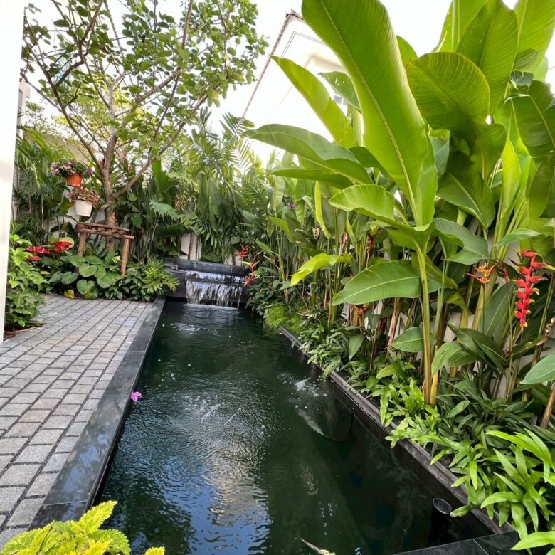 🧭 由风水大师亲自布置,花园 + 瀑布设计助旺家运
