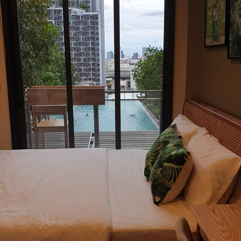 🪟 หน้าต่าง 2 ด้าน รับลม วิวสระยาวเต็มสายตา (ช่วงสระน้ำลึก เงียบสงบ)